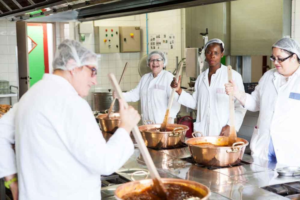 Les confitures sont toutes conçues, goûtées, réalisées et conditionnées à Mérignac, par des personnes en situation de handicap aux Ateliers Saint-Joseph. Préparées avec amour et dans le respect des traditions, les confitures sont cuites en chaudron, à feu nu sans aucun additif ni conservateurs.